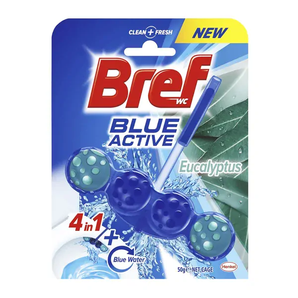 Bref Blue Aktiv je extra účinný WC blok, který čistí toaletu i mezi spláchnutími. Také ji chrání před vodním kamenem. Zároveň obarvuje vodu do modrého odstínu, pro více čistoty a svěžesti. Byl navržen tak, aby dodal vaší toaletě svěžest a vůni s vysokou účinností a čistotou.