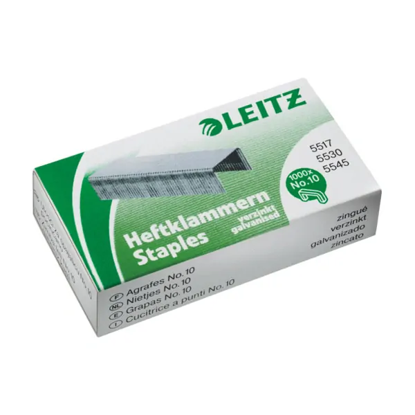 Vysoce kvalitní pozinkované drátky. Sešívací výkon 10 listů/1 mm. Pro sešívačky Leitz 5517, 5530 a kleště Leitz 5545.