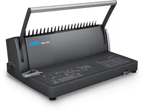 Stroj pro vázání dokumentů do plastových kroužků.