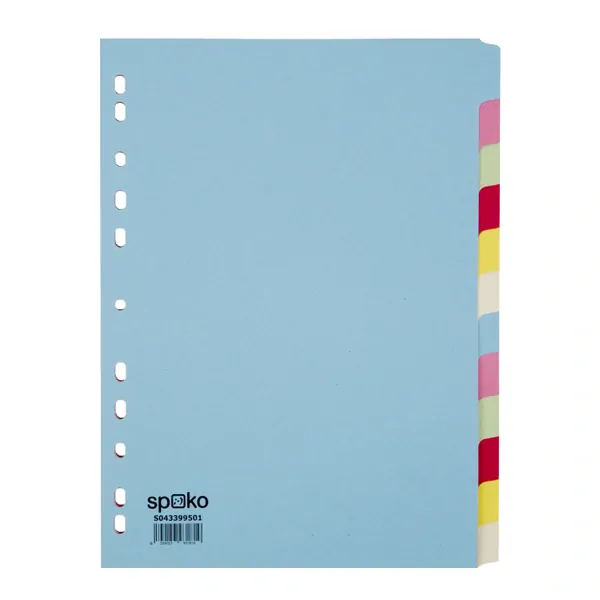 Kartonový registr A4 v mixu pastelových barev. Počet listů: 2 sady po 6 listech, bez potisku. Univerzální euroděrování pro pákové i kroužkové pořadače.