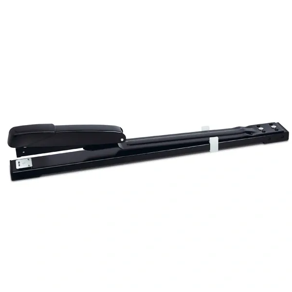 Kovová sešívačka s dlouhým ramenem.