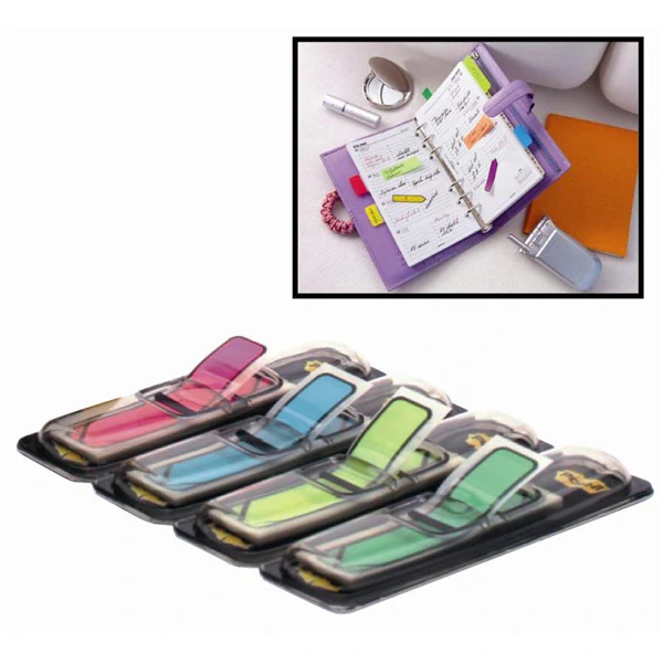 Post-it® Index popisovatelné značkovací záložky ve tvaru šipek (růžová, modrá, žlutá, zelená), nepoškozují podklad, opakovaně použitelné, umožňují nalezení důležité informace, ransparentní pouzdro.